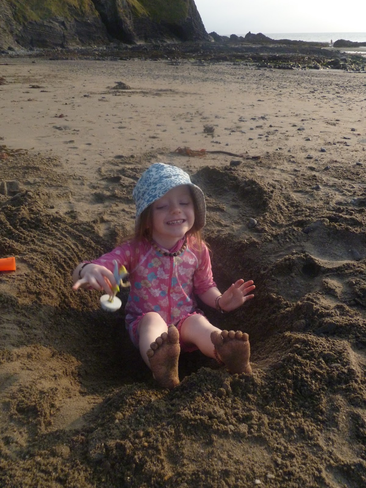 Coo read with her buddy Lizzie, built fairy castles on the rocky beach at Clarach Bay, sat on the beach, and played hide-and-seek with a set of plastic fairies.